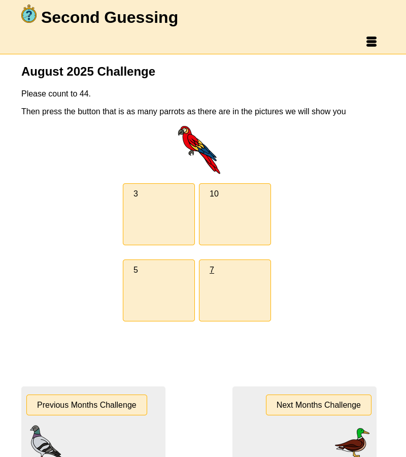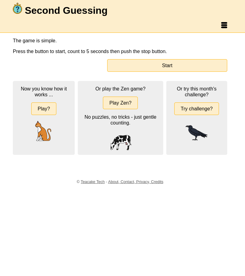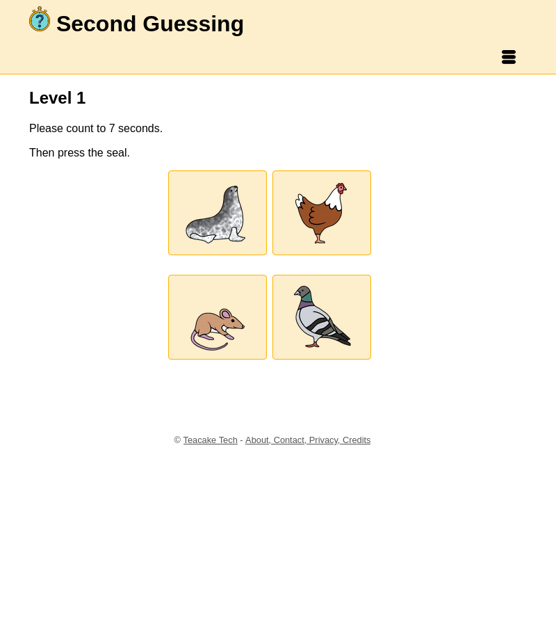 The game is simple. Press the button to start, count to however many seconds we tell you then push the stop button.